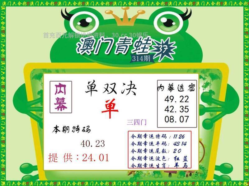 314期:Ω前后两肖┣前肖+鸡猴┫开:羊23错